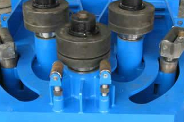 型材彎曲機可一次上料完成型材的預(yù)彎,卷圓和校圓工序;型材彎曲機結(jié)構(gòu)先進,功能全,可根據(jù)用戶使用情況立放或臥放。 型材彎曲機結(jié)構(gòu)為弧線下調(diào)式結(jié)構(gòu),上輥軸固定,兩下輥軸圍繞一中軸相對于上輥軸分別作弧線升降運動,其功能主要是預(yù)彎型材的端部和使型材彎曲變形,同時兩下輥軸也為主傳動軸,由液壓馬達驅(qū)動,使彎曲變形的型材卷制成形。